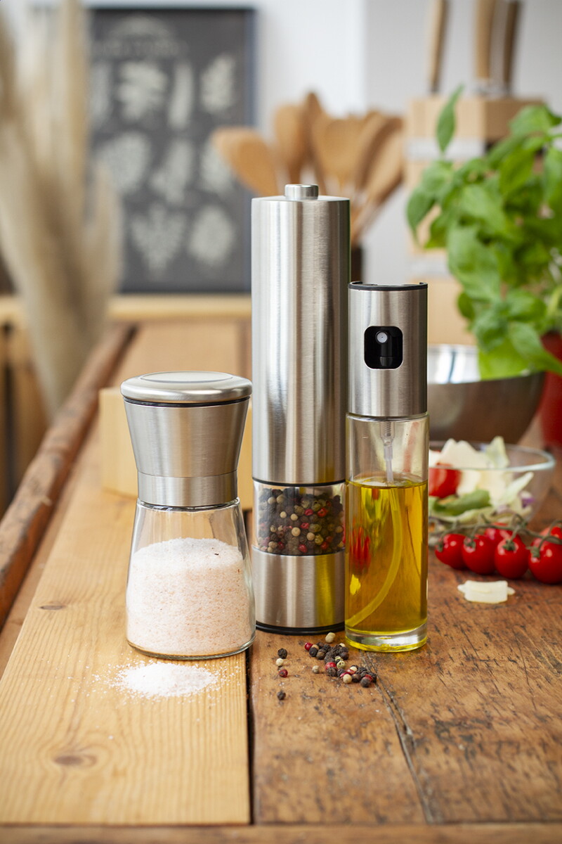 Jego zaawansowane funkcje, takie jak oświetlenie LED, ułatwiają dozowanie przypraw, nawet przy słabym oświetleniu, co sprawia, że jest on doskonały do użytku zarówno w domowych, jak i profesjonalnych kuchniach. Przewidziany do działania na 4 baterie AA (należy dokupić oddzielnie), co zapewnia łatwość w obsłudze i mobilność bez potrzeby stosowania przewodów.