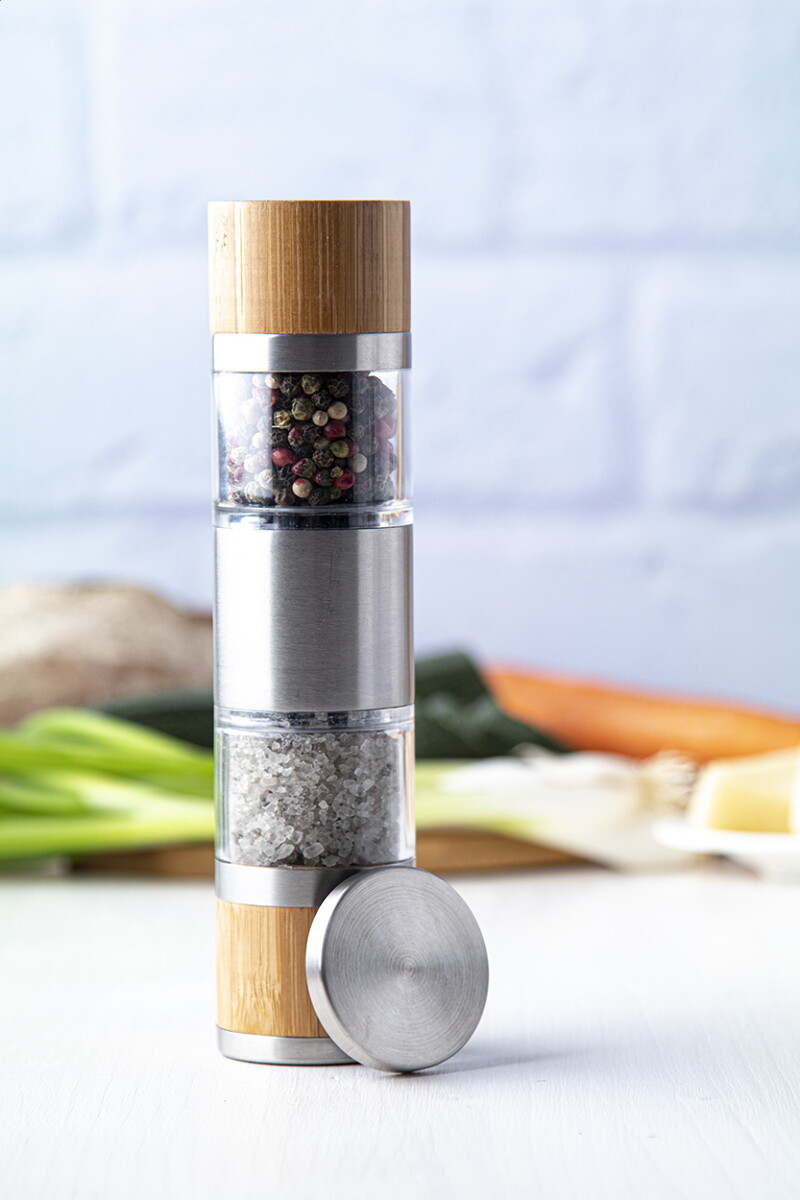 Muntok młynek do soli i pieprzu jest wyjątkowo funkcjonalnym i eleganckim dodatkiem do każdej kuchni, idealnym dla tych, którzy cenią sobie zarówno styl, jak i praktyczność. Oprawa z stali nierdzewnej w połączeniu z naturalnym bambusem nadaje temu produktowi nowoczesny i estetyczny wygląd, harmonijnie komponujący się z różnorodnymi wnętrzami.